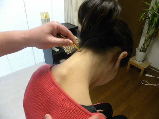 純金製の刺さない鍼による施術です。痛みの元となる部位や、傷めた組織とその周辺に施術することで、血行を促進し、細胞を活性化、硬直した筋肉を緩め、患部を正常な状態に近づけるために用います。